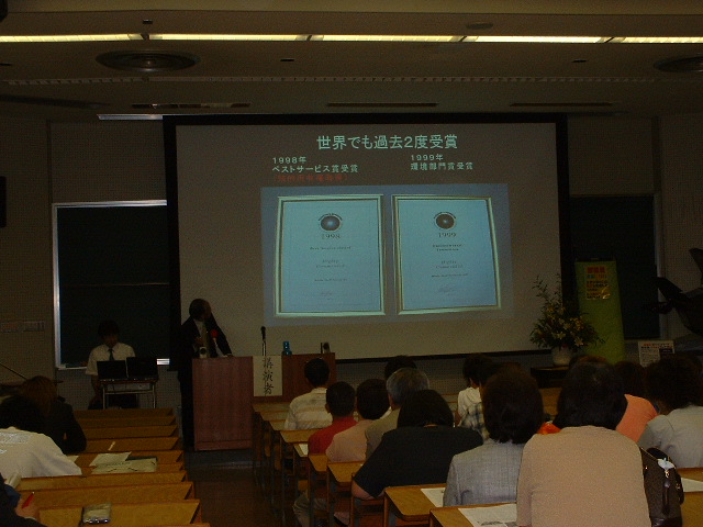 愛知産業大学の公開講座で、前田貞夫氏(株式会社前田シェルサービス代表取締役社長)は、「オンリーワン商品の開発」と題して、社長の前向きな考動が勝つ秘訣、と150人ほどの聴講者に語った。 経営で大切なことに、「クレームに対する姿勢」がある。これを最も重要視している。オンリーワン商品の企画は、まず徹底して顧客を知ることから始まる。また国際的にも通用するものであること。創立以来、毎年新製品の開発をしてきた。そのための情報収集に海外へ頻繁に出向いてきた。企業のリフレッシュ、そのためにトップ自らが市場を把握することが重要。開発商品へのクレームを事前に防ぐため、様々な測定器や試験機を揃えている。展示会をたくさん見るようにしている。その都度、開発に役立つ発見がある。 最近の開発商品には、コンプレッサーのエアフィルター、世界で一番軽い担架がある。1999年、世界的に有名なフィルター専門誌に当社のマルチドライフィルターが紹介され2001年には、抗菌フィルターが紹介された。高齢化社会を意識した100グラムのカーボンステッキを開発し、きんさんぎんさんやクリントン大統領にプレゼントしPRした。また、NHKビジネス塾に出演しカーボン製の軽い担架を紹介した。 レーザーパーティクルカウンターという、クリーンルームの空気不純物や粒子数を測定する器械をいろんな会社の工場に納品している。実際は、こうしたことへの各社の対応はまちまちである。 圧縮空気をクリーン化するための世界で唯一のサービス体制を確立した。HACCP・ISO対応のクリーンな圧縮空気を得るシステムである。メンテナンスが悪いためフィルター通過後の方が汚れていることが多く、これをビジネスにしている。日本プラントメンテナンス協会より過去4回のPM優秀賞受賞、1998年、ベストサービス賞受賞(知的所有権取得)。1999年、われない錆びないプラスティックケースに環境部門賞受賞。これは技術開発努力があったからだ。アメリカ海軍の船の部品や原発の部品などにも納品している。 学生へのアドバイスは、何よりも「自分で勉強する」こと。新材料、新市場、社会の変化に対応できるように、今のうちからチャレンジすることを奨めたい。