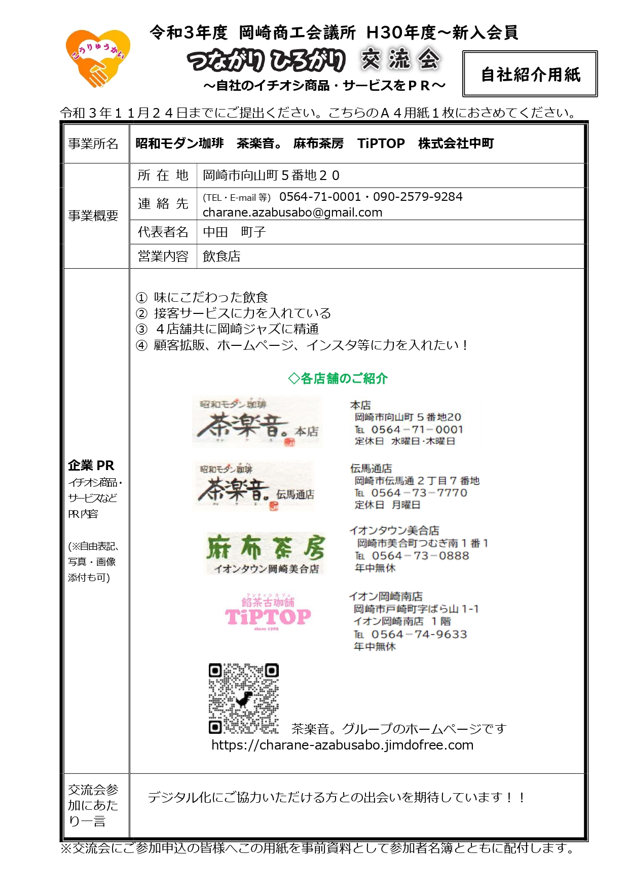 株式会社中町 昭和モダン珈琲茶楽音。