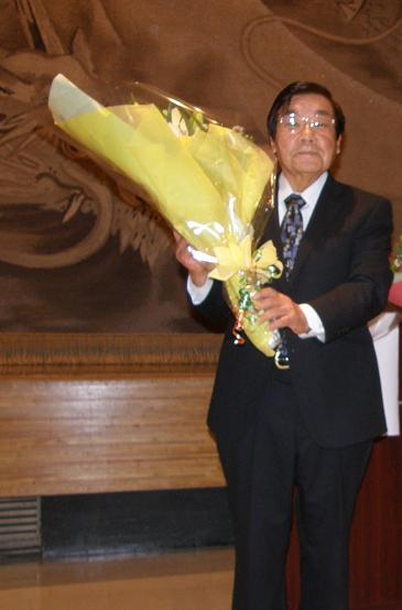 ![]() 挨拶される古澤武雄氏 | ![]() ![]() 退任された伊藤氏・太田氏に花束贈呈 |