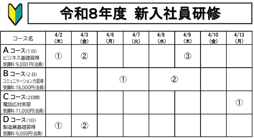 【受講者募集中!】令和8年度 新入社員研修のご案内