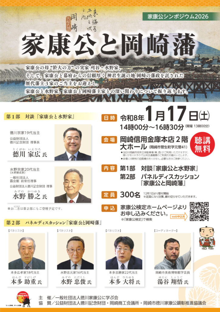 協賛:公益財団法人徳川記念財団・岡崎商工会議所・岡崎市徳川家康公顕彰推進協議会