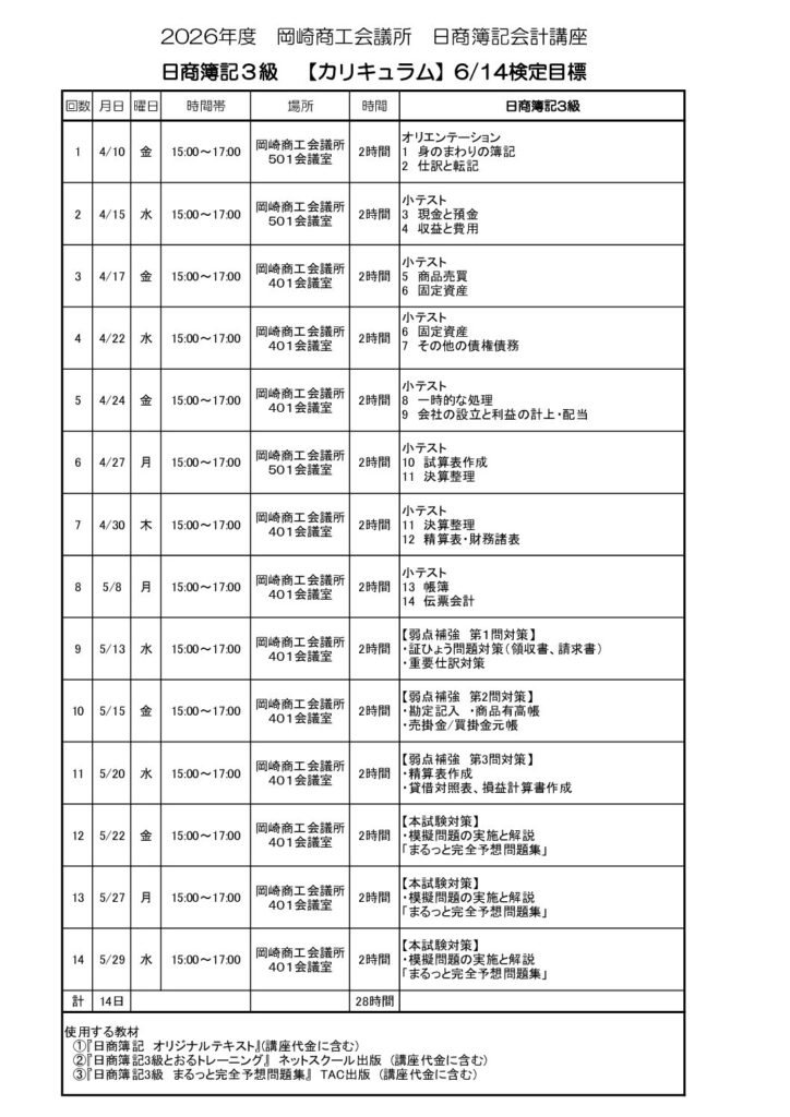 日商簿記会計講座のご案内