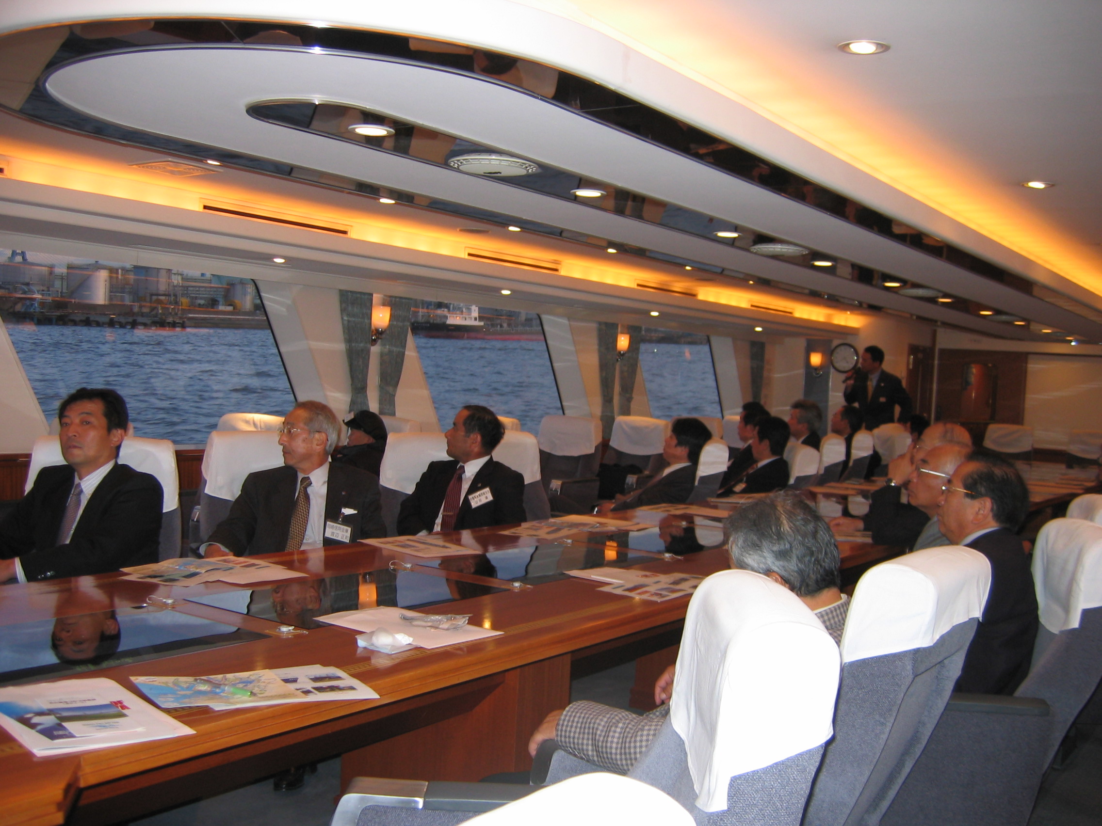 ![]() | ●日 時 平成18年11月17日(金) 12:30〜20:30 ●内 容 「トヨタ博物館見学」&「名古屋港遊覧視察」※理財部会と合同 ●概 要 <トヨタ博物館> 〜ものづくりの歴史に触れる〜 車の進化と日本のモータリゼーションの歩みを、生活文化の変遷とともに紹介する博物館で、ガソリン車が誕生した19世紀末から20世紀の自動車の歴史を、実用車を中心に約120台の車両などにより体系的に展示しています。 参加者は「ものづくり」の歴史に触れつつ、昔のアメリカ車の大きさや華やかさに驚いたり、日本車の変遷を懐かしんだりして、興味深く見入っていました。 <名古屋港> 〜遊覧で港の活気を実感〜 名古屋港は、近年中部経済の好調を背景に、総取扱貨物量・貿易額・外国貿易貨物量とも日本一を誇る総合港湾に成長しています。 当日は、名古屋港管理組合の港務艇「ぽーとおぶなごや2」に乗り込み、湾内の各埠頭を巡り遊覧視察しました。デラックスな客室は応接間のようで、約1時間30分、貸切によりゆったりと大型物流施設や停泊船などを見学、「ものづくり中部」の発展を支える名古屋港の活気を目の当たりにすることができました。 <懇親会> 〜なべ料理で和気あいあい〜 終了後は、中区錦の「楽」にて合同の夕食懇親会を開催。参加者は鳥なべ料理を囲みながら終始楽しそうに懇談し、和気あいあいの時を過ごしました ●参加者の声 ■通常とは異なり、海上から港を見学することができ、とても良かった。石油・石炭・ガス・鉄鉱石・木材チップなど原料の輸入から、工業製品の輸出と、「ものづくり インフラの原点」を実感した。港湾の機能喪失・低下は経済活動に甚大な影響を与えかねず、港湾管理の重要性を認識した。 ■トヨタ博物館では、青春時代を追憶した。また、乗船した船は想像以上に凄く、まさに「走る会議室」で、映画「007」のジェームス・ボンドの気分! 港湾に縁のない我々には素敵な体験となり、また勉強になった。 |