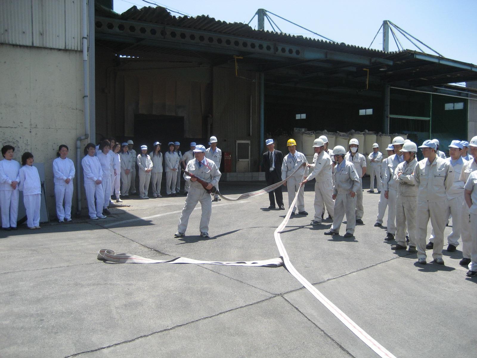 ![]() ▲品質保証室からの教育訓練講話 | ![]() ▲模擬放水訓練 |