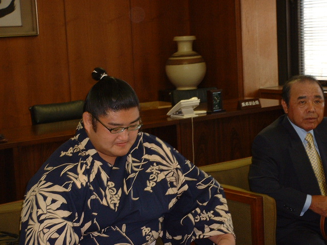 細川町出身の琴光喜関(佐渡ヶ嶽部屋)が名古屋場所を終えて、26日(金)岡崎商工会議所を表敬訪問され、琴光喜岡崎後援会 会長岡田庸男氏らと共に懇談。怪我から再起をかけた名古屋場所は残念ながら七勝八負の負け越し。しかし、来場所の活躍を力強く岡崎商工会議所副会頭 太田進造氏に約束をされました。