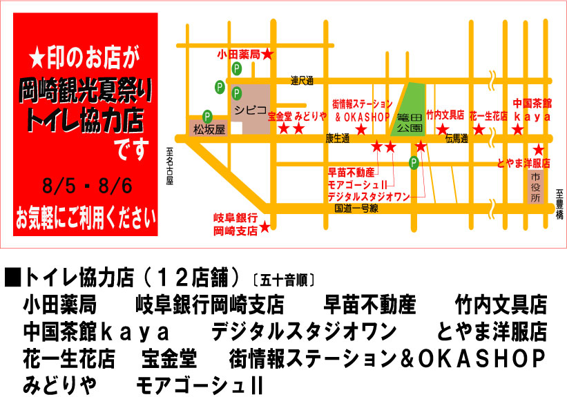 岡崎観光夏祭りトイレ協力店です。(8/5・8/6)
